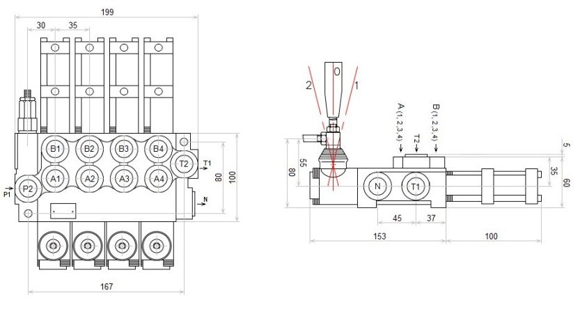 Supply from pump (P1, P2): 1/2″ BSP female thread