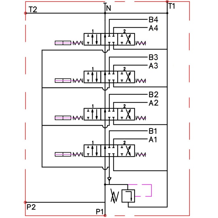 Example of control: four double-acting cylinders.