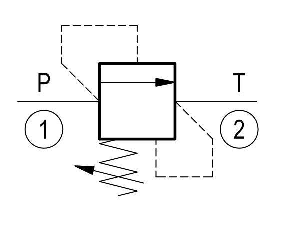 The flow is blocked from 1 to 2 until the pressure rises to the selected valve setting, lifting the poppet from the seat and allowing excess flow through 2 to the tank. The pressure at 2 is in addition to the valve’s excess setting. The unique design of the Bosch Rexroth Oil Control poppet provides increased stability at all flows and pressures. The hardened seat provides increased durability in applications requiring high pressure and high cycle counts.